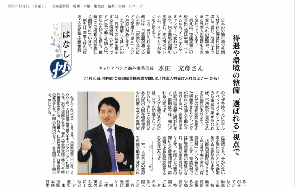 2025年11月20日(木)、北海道宗谷総合振興局主催・運営の「外国人材受入セミナー」において、